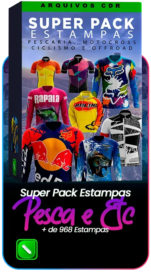 ✅Pack Estampas Pesca, Motocross, Ciclismo e Off Road